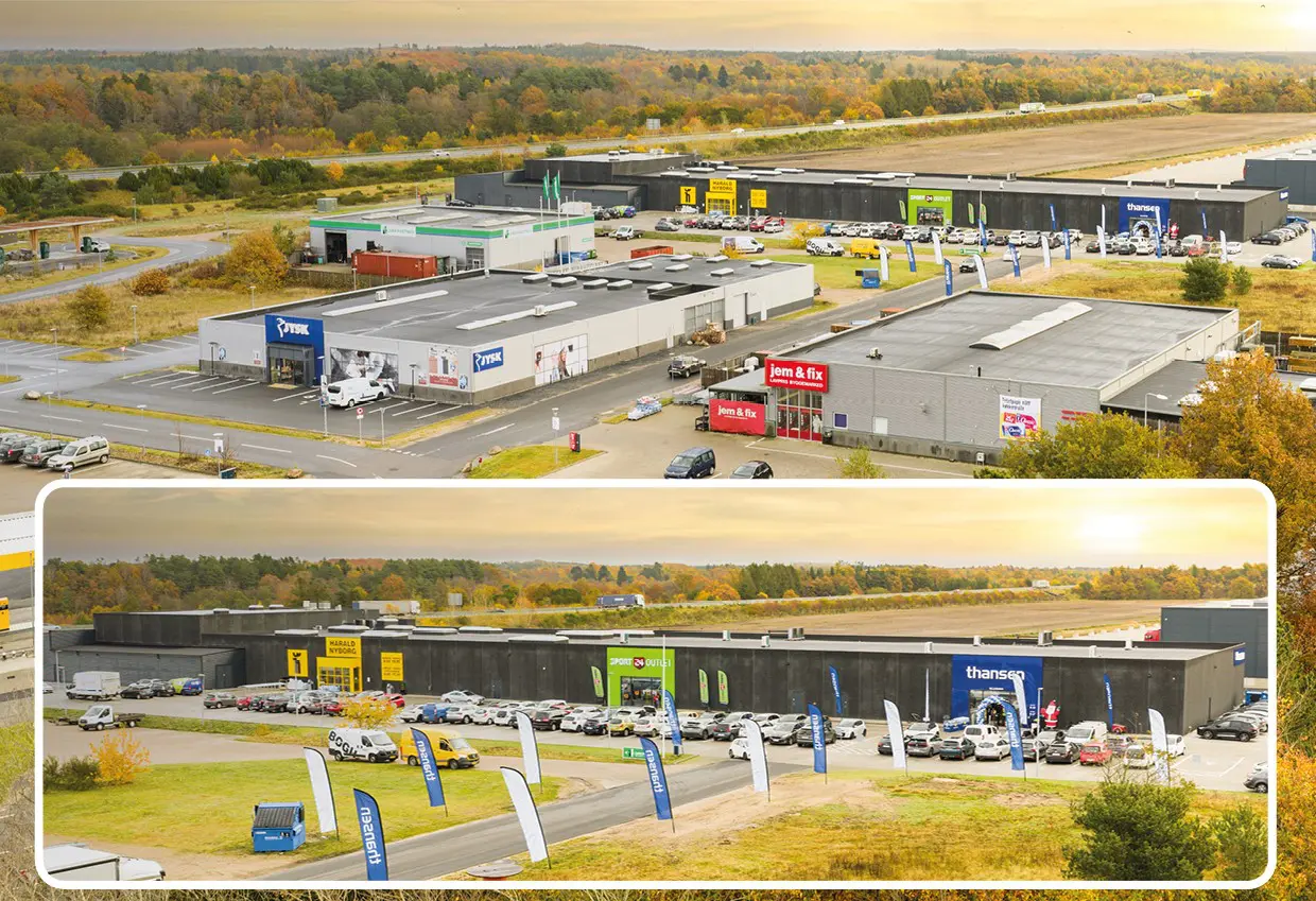 - Ejendommen er særligt velbeliggende ved den midtjyske motorvej og i en veletableret retail park.