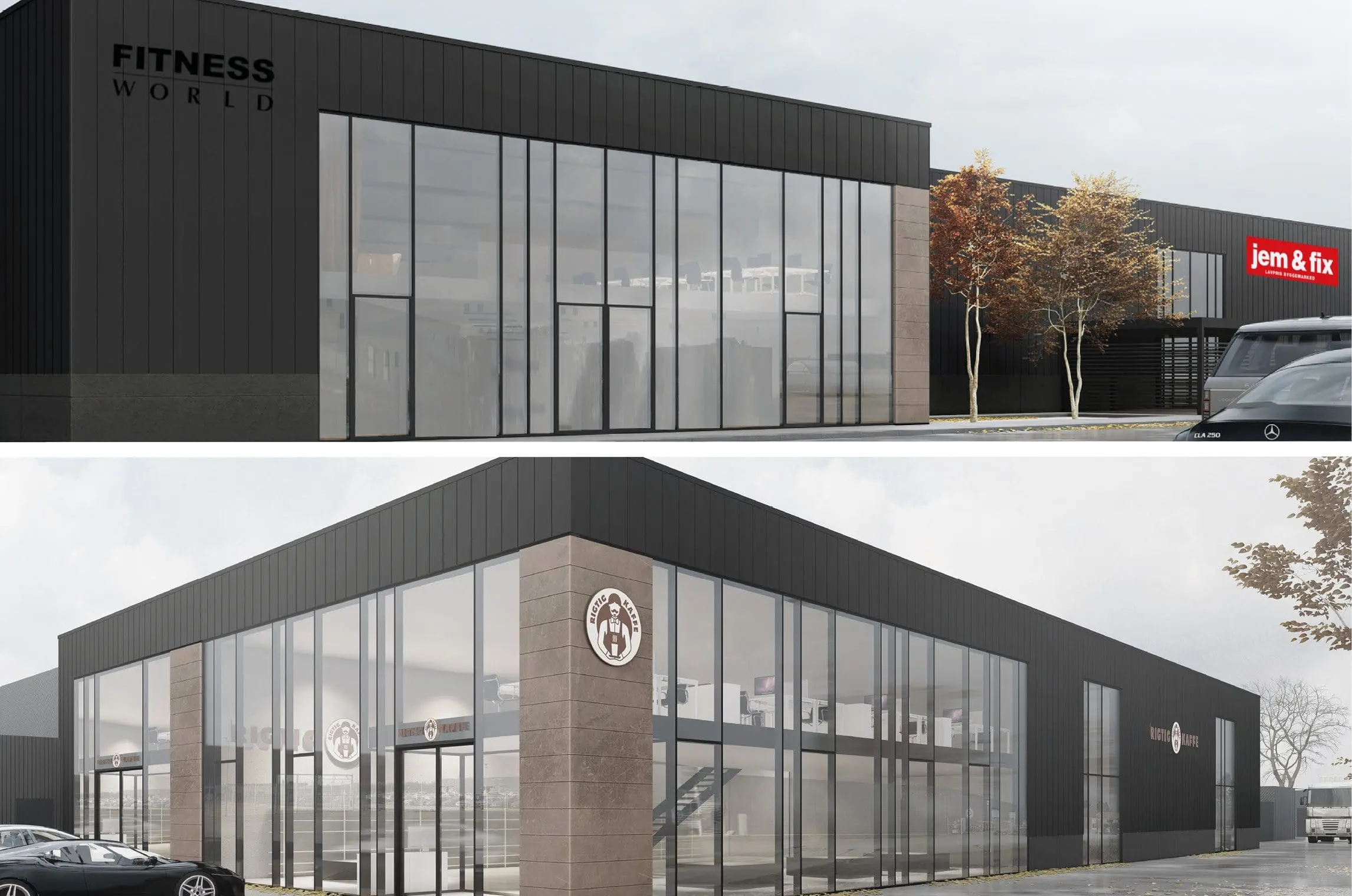 De mange kvadratmeter bliver fordelt mellem Fitness World, lavprisbyggemarkedet jem & fix, som lå der i forvejen og nu blandt andet får drive-in-faciliteter, og Rigtig Kaffe, der er en af landets største forhandlere af espressomaskiner. Fitness World samt jem & fix er begge fra nærområdet, mens Rigtig Kaffe flytter fra Skanderborg og etablerer showroom, kontor og lager.